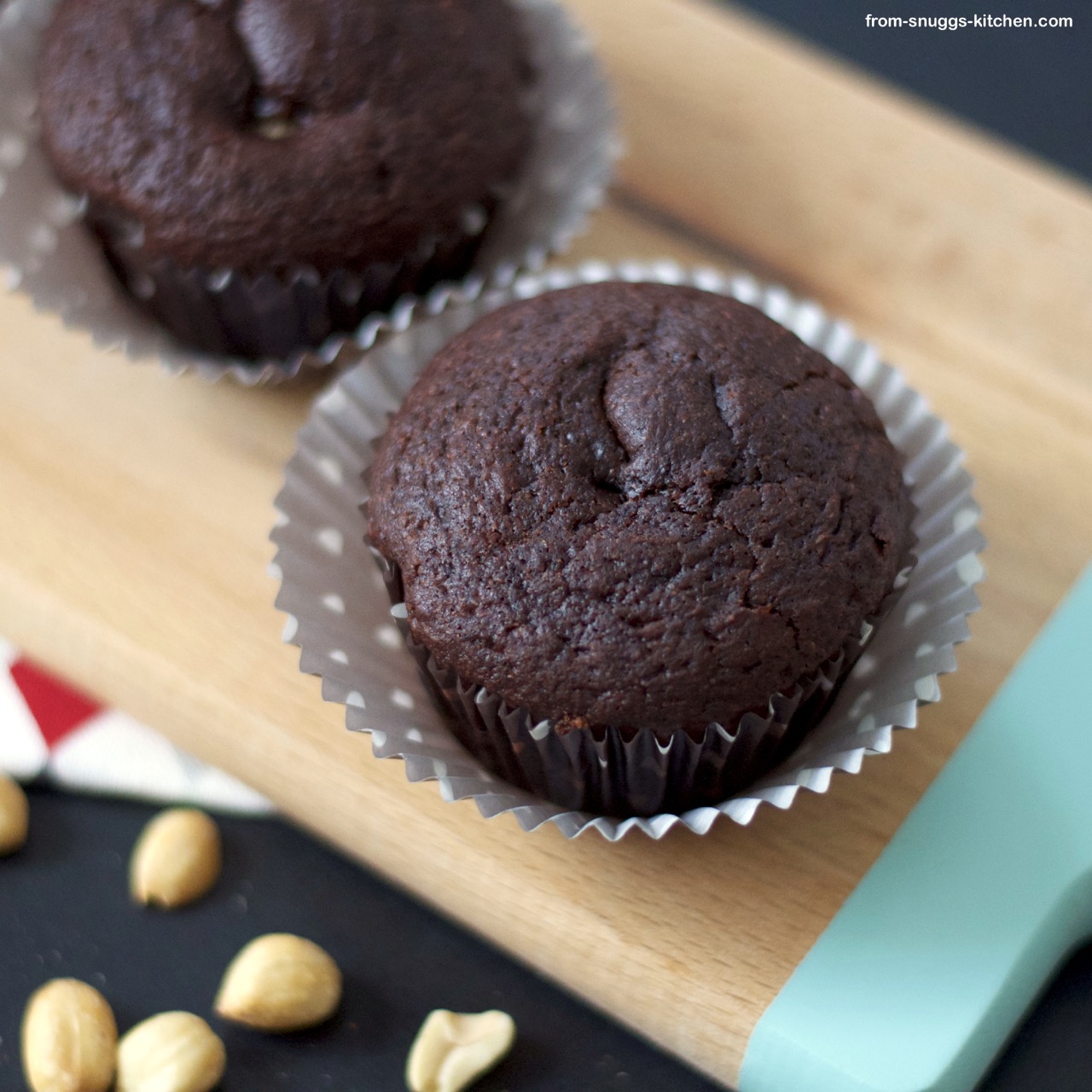 softe Schokoladen-Muffins mit cremiger Erdnussfüllung
